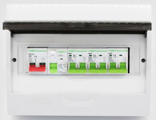 Распределительный пластиковый бокс с автоматическии выключателями (2 Полюсные) и общим УЗО (дифавтомат), для скрытого монтажа электрической проводки. Бокс электрический-распределительный щит на 16 модулей компании TONGOU.